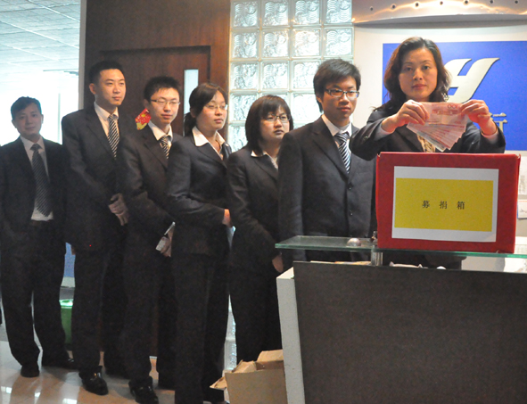 “一方有難,八方支援”。永業(yè)行黨委成員、全體黨員、工會(huì)會(huì)員率先行動(dòng),向玉樹(shù)災(zāi)民捐出一份份熱情的援助;各部門(mén)員工積極響應(yīng)捐款倡議,盡一己之力幫助他們度過(guò)難關(guān)。短短半天時(shí)間,就有眾多員工爭(zhēng)相送來(lái)捐款?;顒?dòng)結(jié)束后,公司將盡快將捐款送達(dá)玉樹(shù)災(zāi)民手中,以幫助他們?cè)缛罩亟覉@。截止發(fā)稿時(shí),捐款活動(dòng)還在進(jìn)行中。