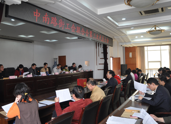 出席本次大會(huì)的領(lǐng)導(dǎo)有:武昌區(qū)總工會(huì)常務(wù)副主席周訓(xùn)、副主席楊霞、組織部長嚴(yán)必忠;中南路街工委書記葛文凱,副書記、紀(jì)委書記羅林,副書記孫婭莉,辦事處副主任何文娟、人武部部長阮武興等。會(huì)議由中南路街人武部部長阮武興主持。羅林副書記在會(huì)上作了工作報(bào)告并對(duì)未來五年工會(huì)工作進(jìn)行了展望;會(huì)議審議通過了《武昌區(qū)中南路街工會(huì)聯(lián)合會(huì)章程》(修正案)和《武昌區(qū)中南路街工會(huì)聯(lián)合會(huì)第三次代表大會(huì)選舉辦法》,并選舉產(chǎn)生了第三屆常務(wù)委員會(huì)委員。