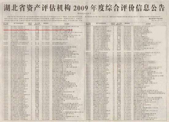 在6月8日公布的湖北省資產(chǎn)評估機(jī)構(gòu)2009年度綜合評價(jià)排名信息中,湖北永業(yè)行資產(chǎn)評估咨詢有限公司(以下簡稱“永業(yè)行資產(chǎn)評估公司”)位居第三,排名較2008年度上升了兩位。
