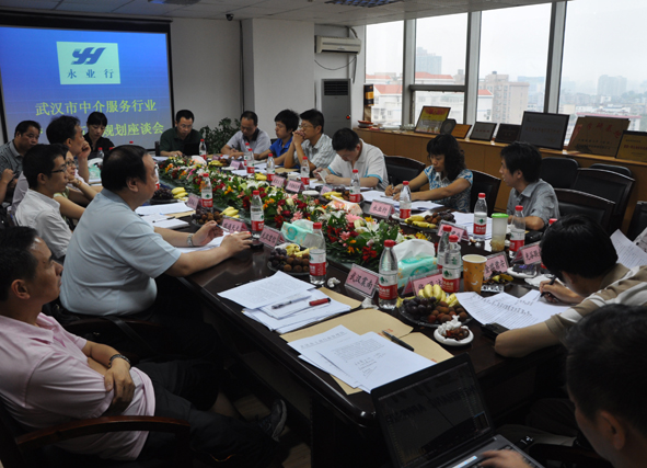 7月8日,武漢市中介服務行業(yè)“十二五”規(guī)劃座談會在永業(yè)行召開。武漢市委統(tǒng)戰(zhàn)部徐軍處長、武漢市發(fā)改委服務業(yè)發(fā)展處副處長鄭道霞及武漢市評估、會計、律師、稅務、人力資源、信用、房地產(chǎn)中介等服務行業(yè)的17家機構代表參加了會議。